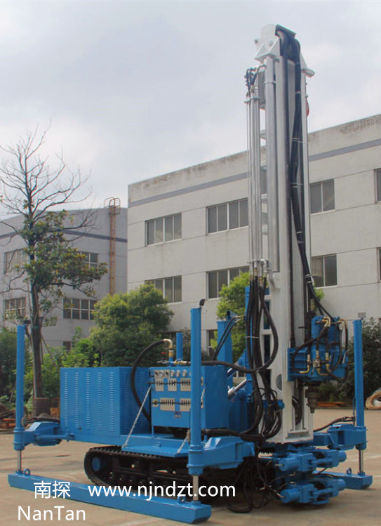該鉆機(jī)最大特點(diǎn)為動(dòng)力頭行程為5米,配備有大扭矩液壓馬達(dá)回轉(zhuǎn)、油缸推進(jìn)及提升能力大。配有液壓伸縮隨手吊車(chē)和液壓卷?yè)P(yáng)機(jī),減輕勞動(dòng)強(qiáng)度。動(dòng)力頭具有多種速度,使得鉆孔范圍更寬。液壓支腿行程大,不需吊車(chē)鉆機(jī)即可轉(zhuǎn)場(chǎng)裝卸。