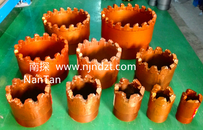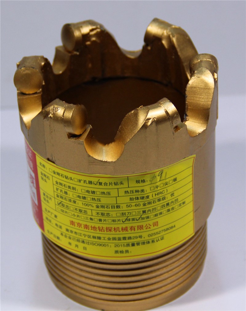 巖心管(單管)取芯復合片鉆頭按照復合片的種類又可以分:普通型復合片鉆頭、加強型復合片鉆頭、球面復合片鉆頭、超強型復合片鉆頭、盔齒型復合片鉆頭、切片復合片鉆頭、小牙復合片鉆頭、小牙螺紋復合片鉆頭、菠蘿復合片鉆頭、外肋骨復合片鉆頭、無內徑跟管復合片鉆頭等許多種,以便于滿足不同地層、砂礫石、巖石的取芯需求。該種鉆頭穩(wěn)定性好,具有使用壽命長、鉆進效率高、低壓中速鉆進、保徑效果好、使用范圍廣和具有優(yōu)越的性價比等特點,可廣泛應用于地質勘探、煤田開采、水利水電施工(水井開發(fā))、地熱孔、公路、鐵路、建筑施工建設的巖石鉆進及巖石抽心取樣驗樁。