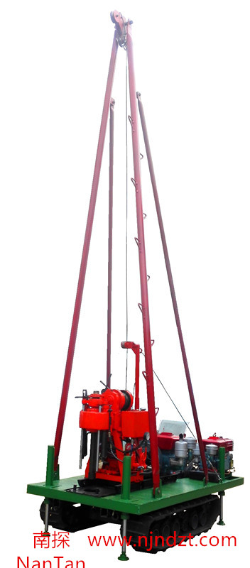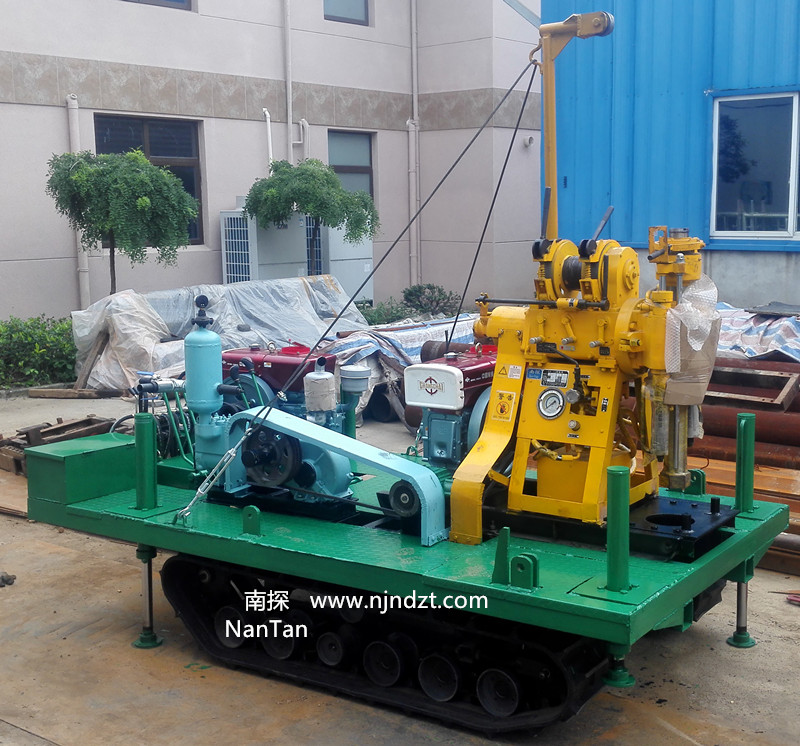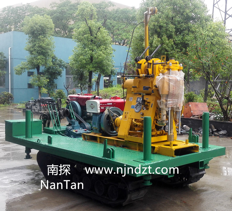 該履帶底盤承載重量達(dá)4T,可以裝載各種小型鉆機(jī),如:XY-1-1、XY-1、XY-1A、XY-1A(YJ)、XY-1A-4、XY-1A-5、XY-1B、XY-1B-1、XY-1B-2、XY-200、XY-200(YJ)、XY-200B、XY-200B-1、XY-200B-2、GXY-1系列、GXY-2Q、GXY-200B、GYQ-200、GYQ-200A、GK180、GXY-2K、GXY-2C等100-300米鉆機(jī),并可同時(shí)裝載BW160、BW160A、BW200或BW200A型泥漿泵,具有利用鉆機(jī)卷?yè)P(yáng)機(jī)起落鉆塔、行走方便等特點(diǎn),廣泛適用于公路、鐵路、水電、橋梁、壩基等的工程地質(zhì)勘察、地質(zhì)巖芯鉆探、物理勘察、小型灌漿孔、爆破孔、水井孔和空調(diào)孔的鉆進(jìn)。