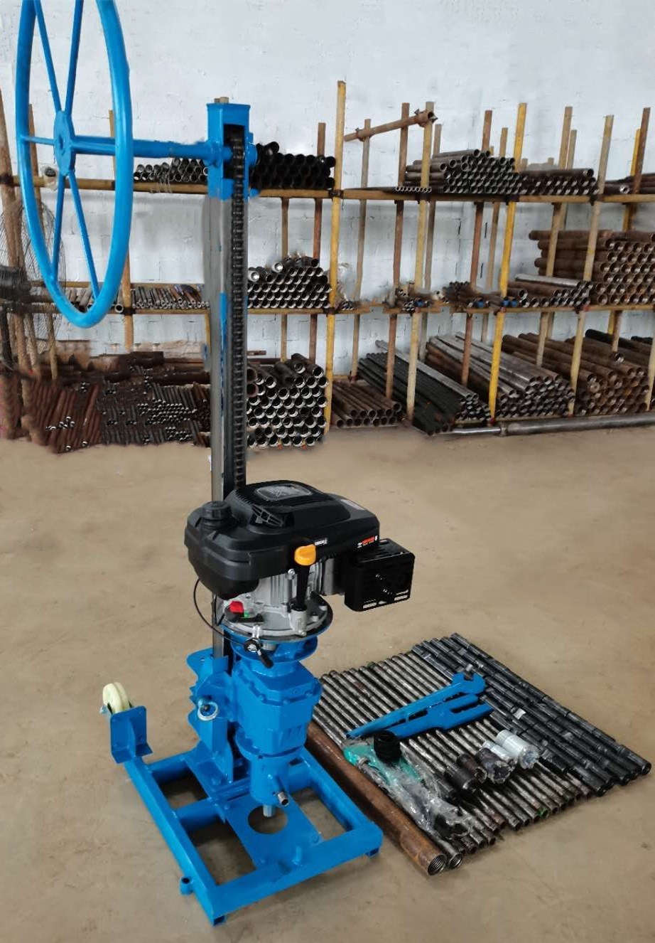 1、取樣鉆機(jī):含汽油發(fā)動(dòng)機(jī)、鉆進(jìn)裝置、鏈條式支架、轉(zhuǎn)向盤(pán)。