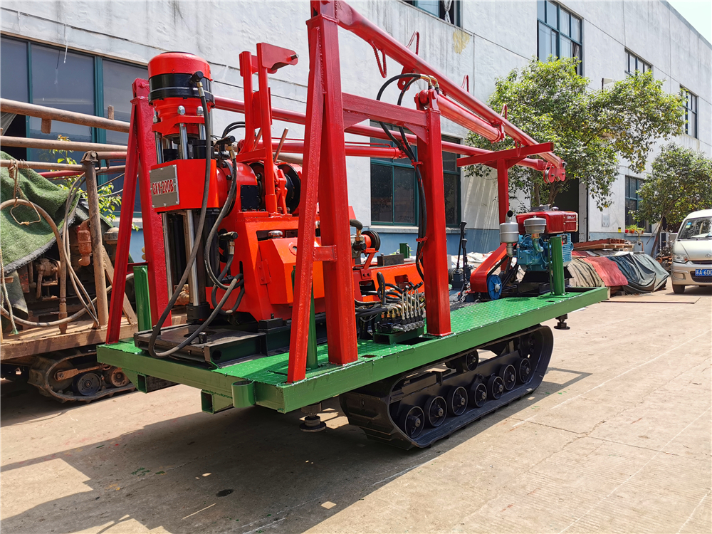GXY-200B-L-02-B-STRZT型履帶鉆機是將橡膠履帶底盤、動力(柴油機或電機)、GXY-200B型鉆機、鉆機平臺、液壓支撐腿系統(tǒng)、人字形全液壓起落架、泥漿泵(單缸或雙缸)等共同組裝在一個機架上。鉆機一個動力(柴油機或電機),橡膠履帶底盤、泥漿泵一個動力(柴油機或電機)帶動,互不干擾,避免單動力變換負荷造成磨損影響施工。